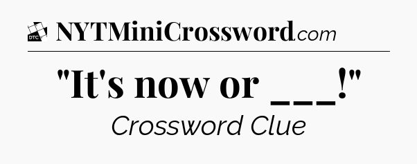 The correct answer to the crossword clue “”It’s now or ___!”” is NEVER.