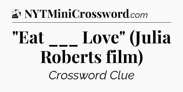 The clue “”Eat ___ Love” (Julia Roberts film)” most recently appeared in a Daily Themed Crossword on May 6, 2023.