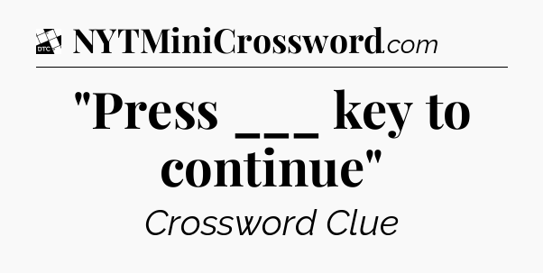 The clue “”Press ___ key to continue”” most recently appeared in a Daily Themed Crossword on May 9, 2023.