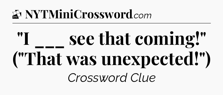 The clue “”I ___ see that coming!” (“That was unexpected!”)” most recently appeared in a Daily Themed Crossword on June 3, 2024.