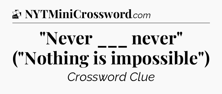 The clue “”Never ___ never” (“Nothing is impossible”)” most recently appeared in a Daily Themed Crossword on September 25, 2024.