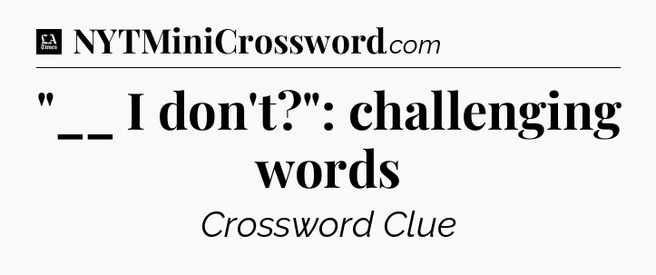 The clue “”__ I don’t?”: challenging words” most recently appeared in a LA Times Crossword on January 11, 2021.