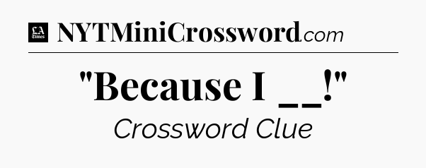 The clue “”Because I __!”” most recently appeared in a LA Times Crossword on January 13, 2019.
