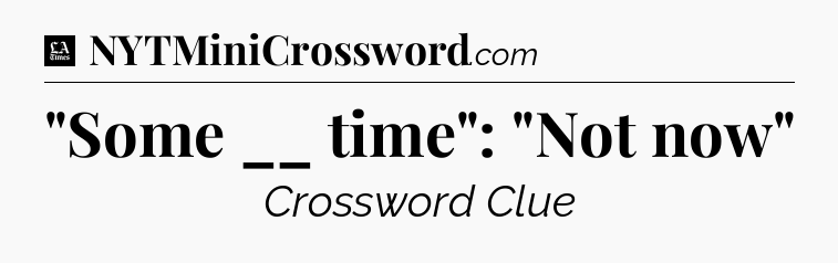 The clue “”Some __ time”: “Not now”” most recently appeared in a LA Times Crossword on January 14, 2019.