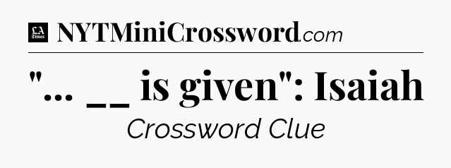 The clue “”… __ is given”: Isaiah” most recently appeared in a LA Times Crossword on January 17, 2020.