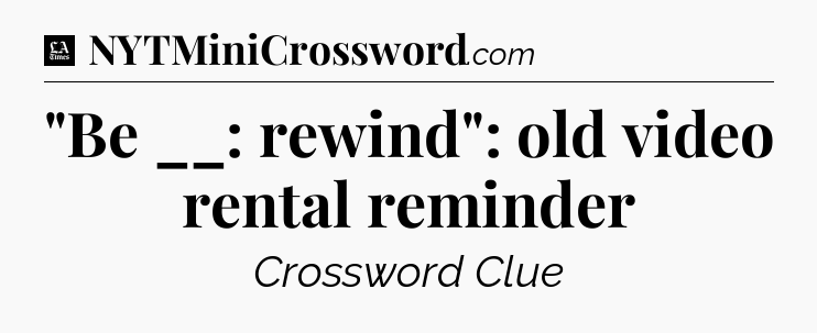 The clue “”Be __: rewind”: old video rental reminder” most recently appeared in a LA Times Crossword on January 18, 2021.