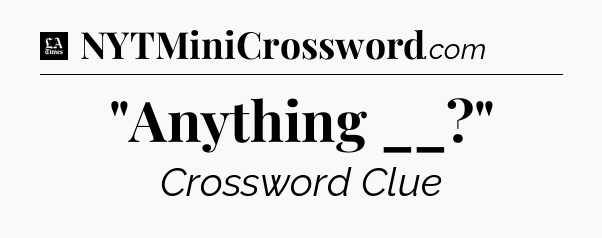 The clue “”Anything __?”” most recently appeared in a LA Times Crossword on January 20, 2019.