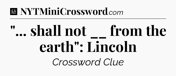 The clue “”… shall not __ from the earth”: Lincoln” most recently appeared in a LA Times Crossword on January 20, 2019.