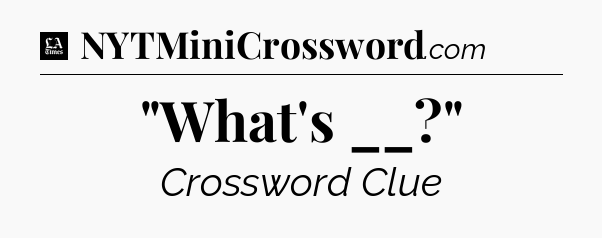 The clue “”What’s __?”” most recently appeared in a LA Times Crossword on January 20, 2019.