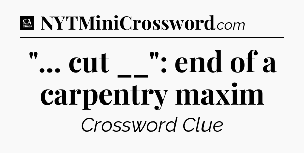 The clue “”… cut __”: end of a carpentry maxim” most recently appeared in a LA Times Crossword on January 20, 2023.