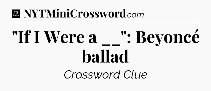The clue “”If I Were a __”: Beyoncé ballad” most recently appeared in a LA Times Crossword on January 20, 2023.