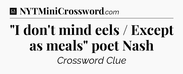 The clue “”I don’t mind eels / Except as meals” poet Nash” most recently appeared in a LA Times Crossword on January 22, 2019.