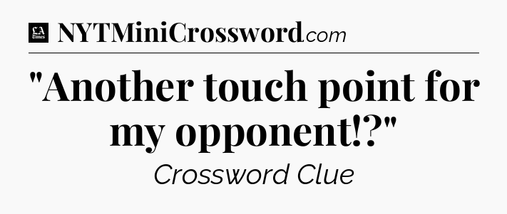 The clue “”Another touch point for my opponent!?”” most recently appeared in a LA Times Crossword on January 22, 2025.