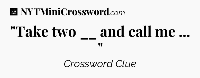 The clue “”Take two __ and call me … “” most recently appeared in a LA Times Crossword on January 23, 2019.
