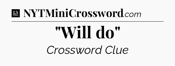 The clue “”Will do”” most recently appeared in a LA Times Crossword on January 23, 2022.