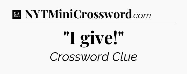 The clue “”I give!”” most recently appeared in a LA Times Crossword on January 26, 2023.
