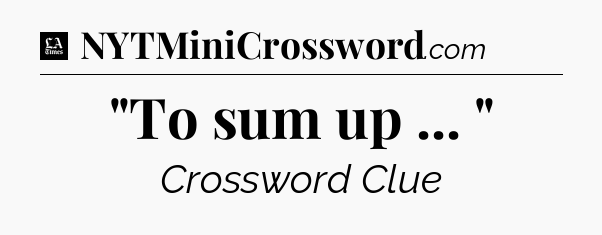 The clue “”To sum up … “” most recently appeared in a LA Times Crossword on January 27, 2019.