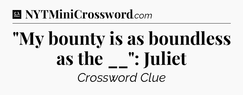 “”My bounty is as boundless as the __”: Juliet” LA Times Crossword Clue: Frequently Asked Questions