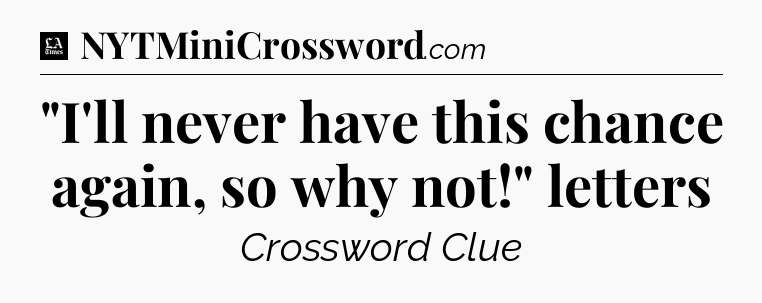 The clue “”I’ll never have this chance again, so why not!” letters” most recently appeared in a LA Times Crossword on January 28, 2025.