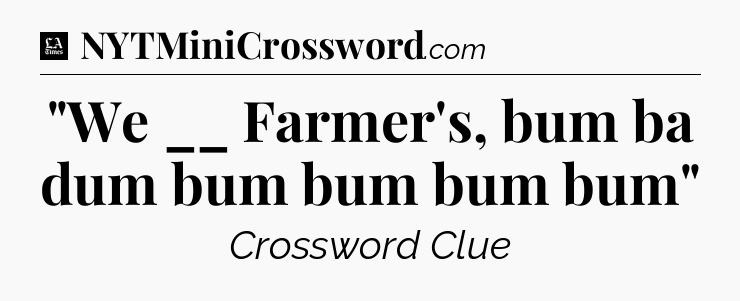 What is the answer to the clue “”We __ Farmer’s, bum ba dum bum bum bum bum””?