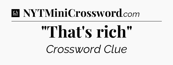 The clue “”That’s rich”” most recently appeared in a LA Times Crossword on January 30, 2020.