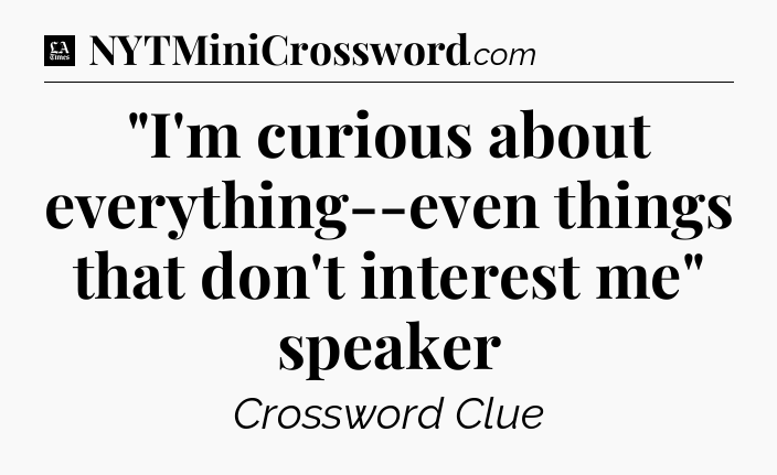 The clue “”I’m curious about everything–even things that don’t interest me” speaker” most recently appeared in a LA Times Crossword on January 9, 2021.