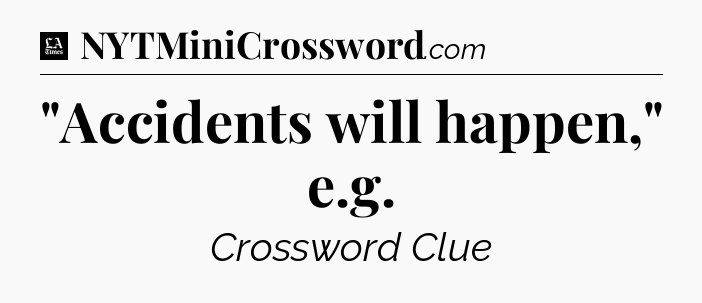 The clue “”Accidents will happen,” e.g” most recently appeared in a LA Times Crossword on October 10, 2021.