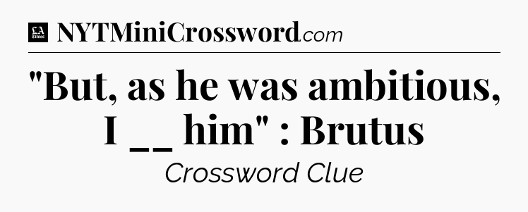 The clue “”But, as he was ambitious, I __ him” : Brutus” most recently appeared in a LA Times Crossword on October 11, 2019.
