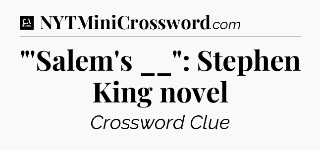 The clue “”‘Salem’s __”: Stephen King novel” most recently appeared in a LA Times Crossword on October 14, 2021.