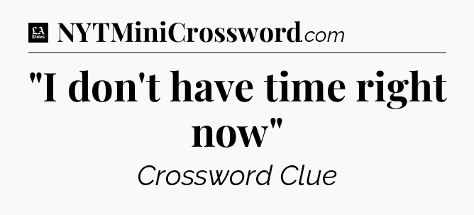 The clue “”I don’t have time right now”” most recently appeared in a LA Times Crossword on October 15, 2019.