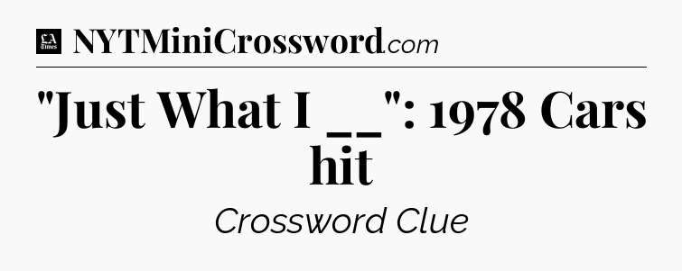 The clue “”Just What I __”: 1978 Cars hit” most recently appeared in a LA Times Crossword on October 16, 2020.