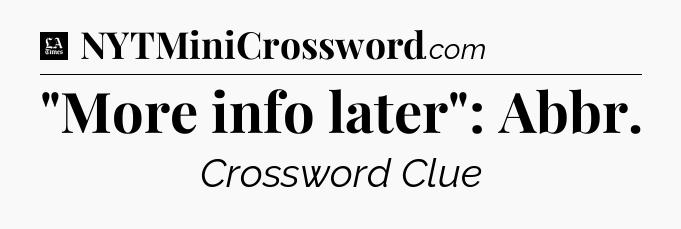The Answer for “More info later”: Abbr – LA Times Crossword Clue Solution is: