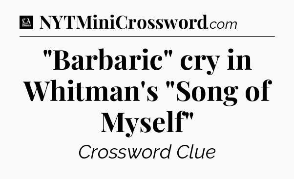 The clue “”Barbaric” cry in Whitman’s “Song of Myself”” most recently appeared in a LA Times Crossword on October 18, 2022.