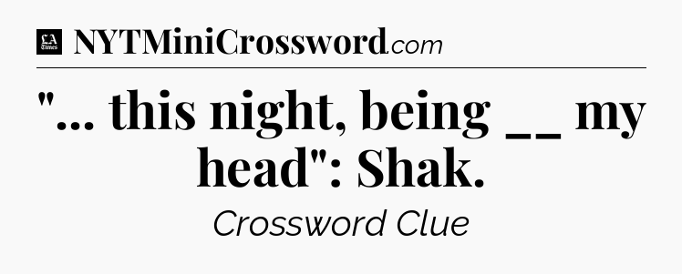 The clue “”… this night, being __ my head”: Shak” most recently appeared in a LA Times Crossword on October 19, 2018.