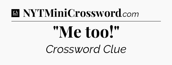 The clue “”Me too!”” most recently appeared in a LA Times Crossword on October 21, 2019.