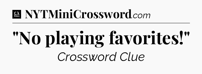 The clue “”No playing favorites!”” most recently appeared in a LA Times Crossword on October 23, 2024.
