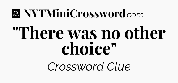 The clue “”There was no other choice”” most recently appeared in a LA Times Crossword on October 24, 2019.