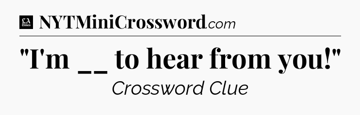 The clue “”I’m __ to hear from you!”” most recently appeared in a LA Times Crossword on October 24, 2021.