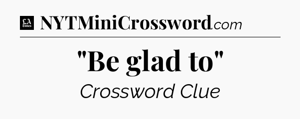 The clue “”Be glad to”” most recently appeared in a LA Times Crossword on October 26, 2022.