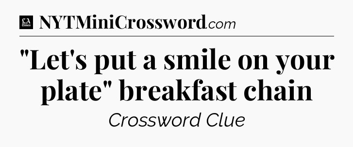 The clue “”Let’s put a smile on your plate” breakfast chain” most recently appeared in a LA Times Crossword on October 26, 2022.