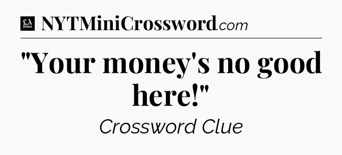 The clue “”Your money’s no good here!”” most recently appeared in a LA Times Crossword on October 26, 2024.