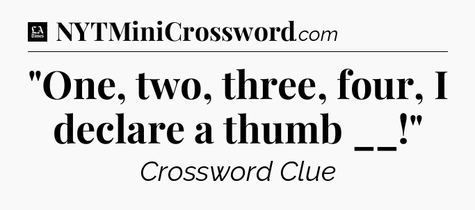 The clue “”One, two, three, four, I declare a thumb __!”” most recently appeared in a LA Times Crossword on October 27, 2024.