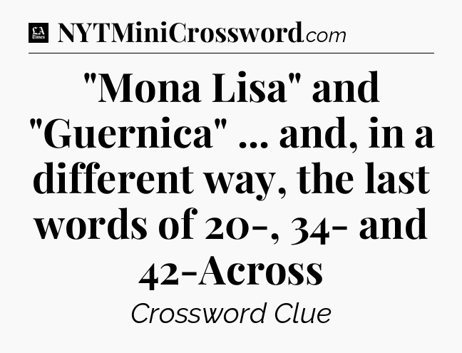 The clue “”Mona Lisa” and “Guernica” … and, in a different way, the last words of 20-, 34- and 42-Across” most recently appeared in a LA Times Crossword on October 28, 2021.