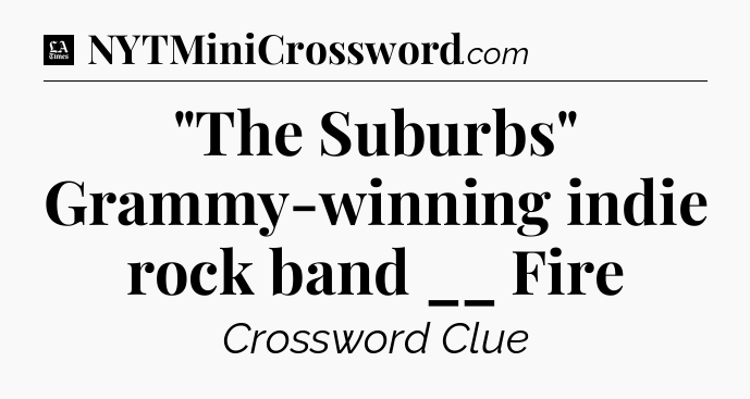 The clue “”The Suburbs” Grammy-winning indie rock band __ Fire” most recently appeared in a LA Times Crossword on October 3, 2020.