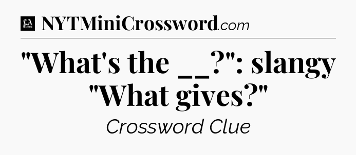 “”What’s the __?”: slangy “What gives?”” LA Times Crossword Clue: Frequently Asked Questions