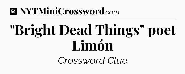 The clue “”Bright Dead Things” poet Limón” most recently appeared in a LA Times Crossword on October 31, 2024.