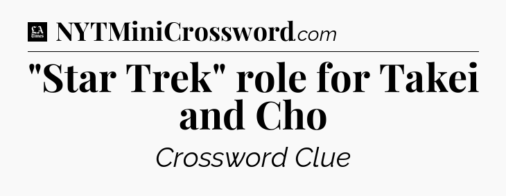 The clue “”Star Trek” role for Takei and Cho” most recently appeared in a LA Times Crossword on October 5, 2017.