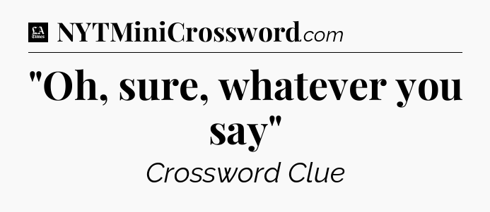 The clue “”Oh, sure, whatever you say”” most recently appeared in a LA Times Crossword on October 5, 2022.