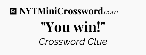 The clue “”You win!”” most recently appeared in a LA Times Crossword on October 9, 2022.