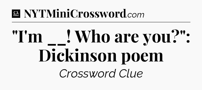 The clue “”I’m __! Who are you?”: Dickinson poem” most recently appeared in a LA Times Crossword on November 1, 2022.